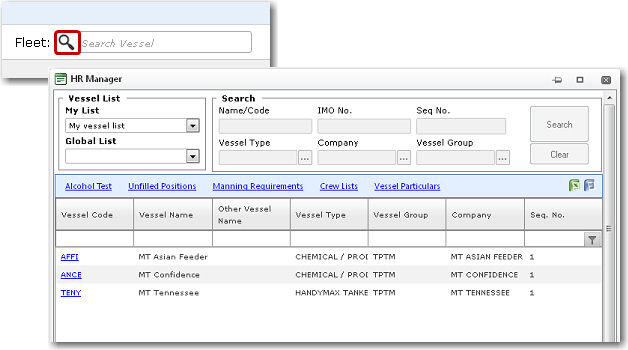 To set up a chart of accounts: 1. From the HR Manager main menu, click Payroll Setup under the Home - Administration sub menu. The Payroll Setup screen is displayed. Then, click the Chart of Accounts tab. 2. Use the Fleet search field to search and select a vessel for which you want to set up the chart of accounts. Note: To use a previously saved list of vessels, click the search icon in the Fleet search field to use the Vessel List feature on the HR Manager simple search window. Use the drop-down function to select and load a list from the Vessel List section. Then click a vessel from this list to load the record. 3. Click New to set up a new chart of account and enter the following information: