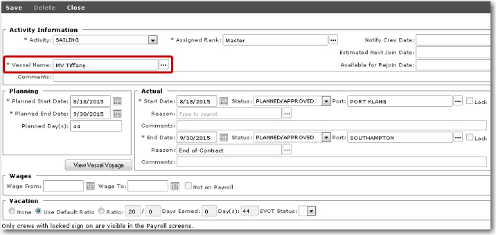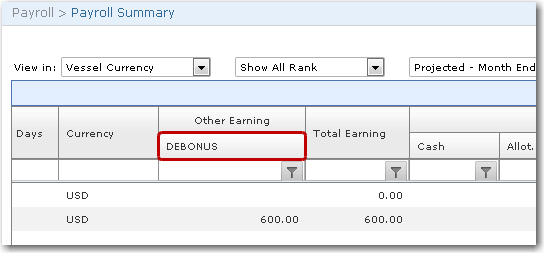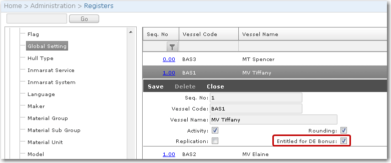The System will then refer to the Global Settings Register and automatically include this bonus for the crew member when he sails onboard the specific vessel.