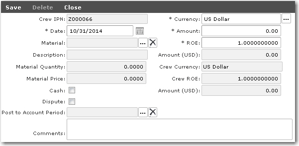 Entering Other Cost Deductions for a Crew Member