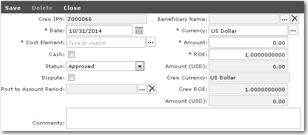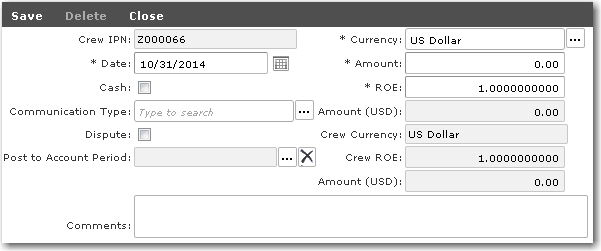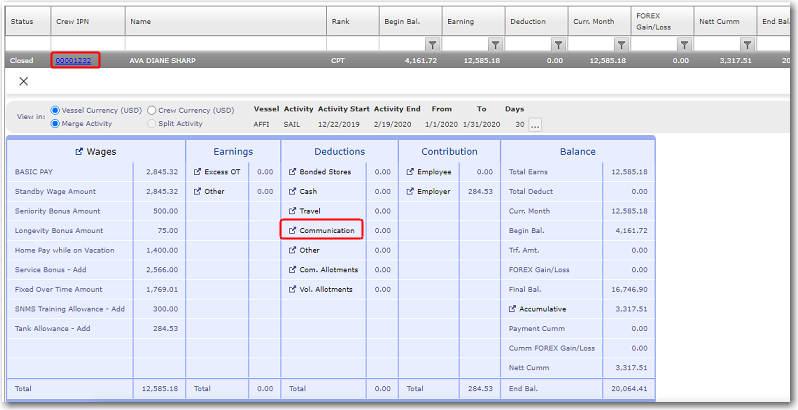 Entering Communication Cost Deductions for a Crew Member