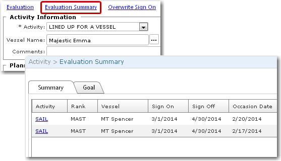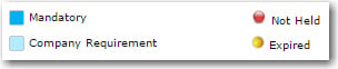For travel documents that are expired or doesn't comply with the requirements, select the check box on the left and click Create Document Request to directly request for a compliant/valid document. Select the check box on the left and click Checked to indicate that you have checked the compliance of the document. The Checked Date, Checked By, Last Updated columns will be updated accordingly. To remove the Checked Date and Checked By information, click Clear. Note: The second left-most column in the tables on this screen indicate whether the document is Mandatory (column for the record is displayed in a blue shade) or a Company Requirement (column for the record is displayed in a light blue shade). Indicators will be displayed in this column when the document is Not Held (denoted with a red indicator) and Expired (denoted with a yellow indicator). A legend is available on this screen for information on the various colors used in this column:   Note: You can select a particular Activity record on the Activity screen and click the Evaluation link to enter details of the crew member's evaluation during the activity. On the Evaluation screen, you can create a new evaluation record and also access the crew member's Crew Behaviour Report.   Note: You can select a particular Activity record on the Activity screen and click the Evaluation Summary link to view a summary of the crew member's evaluations and goals.   Note: You can select a particular Activity record on the Activity screen and click the Split Cost link to indicate the percentage of the cost that will be borne by the different vessels. The Payroll module will then carry out the calculations as necessary.   Note: You can select an Activity record and click the Checklist link to update the checklists for the activity. Select the check boxes and click OK to update.