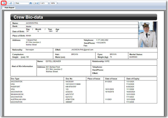 2. Ensure that the crew profile of which you want to generate multiple reports has been loaded. Use the Personnel search field to search and select the relevant crew profile.