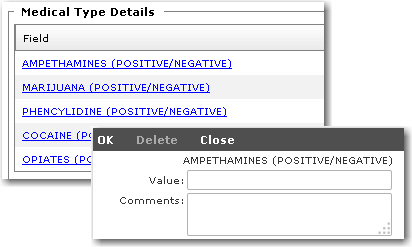The Medical Type codes available for selection under the Medical Examination and Medical Incident tabs will depend on the setup carried out in the Medical Type Register.