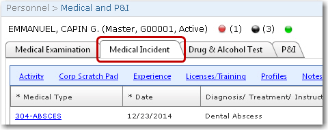 Screen Navigation: Personnel - Medical and P&I - Medical Incident tab