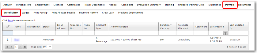 enter details of the crew member's beneficiary: 1. From the HR Manager main menu, click