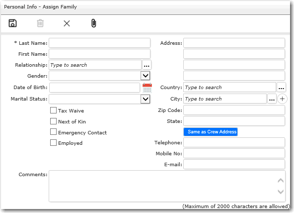 enter the next of kin details of a crew member: 1. After you have entered the Address