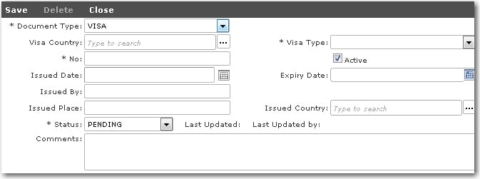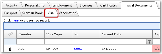 a new visa record for a crew member:   1. From the HR