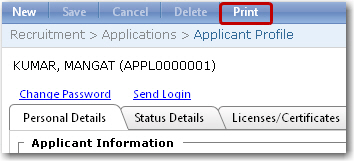 Click Save in the Interview Details section to save the interview details you have just entered. The information will then be displayed in the Interview Details table. To edit a particular interview record in the table, click the interview record and the details will then be displayed. Edit as required and then click Save to save your changes. 12. Under the Personal Details tab, click the Attachment(s) button to upload any relevant documents to an Applicant Profile. The Upload Manager pop-window will then appear. Click the Add Attachment(s) button. Note: To upload documents pertaining to an applicant's interview under the Status Details tab, click an existing interview record and click the Attachment link in the Interview Details section. The File Upload window is displayed. Here, browse through your directories and select the file that you wish to upload and then, click Open. (You can select and upload up to 5 different files at the same time.) The file will be uploaded and displayed in the Upload Manager's list of records. To view the file, click Open. To upload the file, click OK. You can also click the Add URL button to insert relevant or important links. Note: If you want to delete the file, select the file and click the trash icon. This removes the file from the list. 13. After completing all your edits, click Save at the top of the page. 14. To print out this Applicant Profile, click Print at the top of the page. In the pop-up window that appears, click Applicant Profile. 15. The Applicant Profile will then be generated in a format suitable for printing. Click the Print button to send it to your printer. Note: Applicants logging in to edit their application or apply for a different position their passwords from the BASSnet HR Manager login screen by clicking the Manage Password option, and selecting the Reset Password tab. The applicants can enter their applicant IDs into the User ID field, and click “Send Access Code” to send the access code to their e-mail, based on the applicant’s email address. The applicant will then receive an e-mail with the access code with it, which can be populated to the Access Code field before creating the new password.