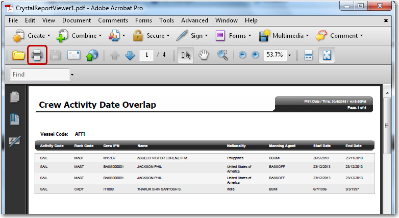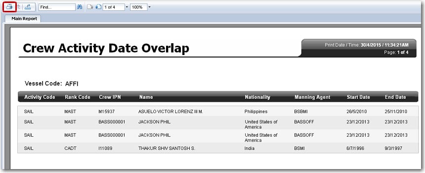 Once the report is generated, it can then be printed if a hard copy of the report is required.