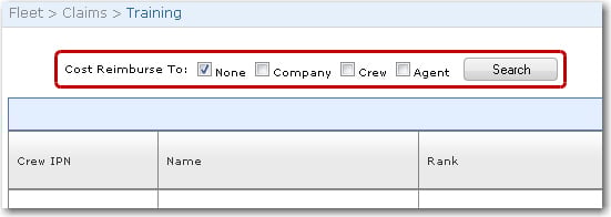 2. The Training screen will be displayed. In the Cost Reimburse To field, use the check boxes to select to whom the training claims need to be reimbursed. Click Search.