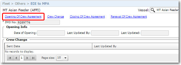 Screen Navigation: Fleet - Others - EDI to MPA - Opening of Crew Agreement link