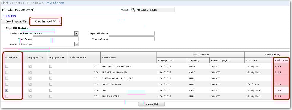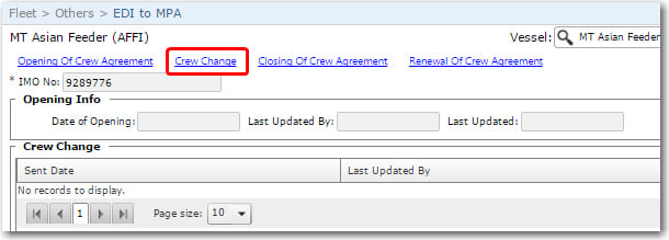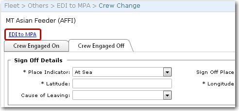 Screen Navigation: Fleet - Others - EDI to MPA - Crew Change link