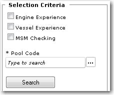 Note: The Include check box enables you to include/omit a criteria for the search without having to remove it from the list of criteria you have selected. This would be handy when running multiple searches one after another. Note: If 'Match All' is selected when defining your search filters, the System will only display records that match all search criteria entered. 3. Click Search. 4. The System will run a search based on the search criteria you have entered. The results of the search will be displayed in the bottom half of the screen. Highlight a crew under the search results and click the Propose Vacancy link. Here you can propose a vacancy for the selected crew member who is currently available or is about to be available to fill a position. 5. The Propose Vacancy screen will be displayed. The previously selected crew record will be automatically displayed on this screen. The Available From and Available To dates indicate the duration during which the crew member is available to fill a position.   6. You can carry out a search for upcoming vacancies using the Selection Criteria section. Filter your search based on Engine Experience, Vessel Experience, MSM Checking and Pool Code. The Pool Code field allows you to select the vessel pool within which the search will be carried out. Select the appropriate check box to use this filter and use the Lookup function to select the relevant Pool code.   7. Click Search. A list of available vacancies will be displayed. The Vacancy From Date column displays the date when the position will become vacant. 8. Select a crew record in the Selected Crew table and then select a record in the Available Vacancy table. This indicates that you want to plan that the crew member selected in the first table will take over the position selected in the second table when it becomes available. 9. After selecting the record, click Activity. 10. The Activity screen for the crew member selected in the Selected Crew table will be displayed. Note that all the details of the upcoming vacancy will be automatically displayed in the crew member's Activity screen. Make any modifications as required and then save the Activity to create it. 11. Repeat the steps above for the remaining crew records in the Selected Crew table of the Propose Vacancy screen.