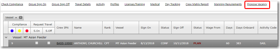 Using Propose Vacancy (from the Fleet - Crew Lists screen)