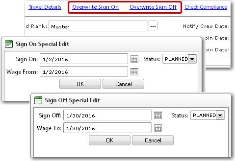 Screen Navigation: Planning - Planned Crew Change - Request Travel