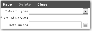 Screen Navigation: Personnel - Profiles - Employment tab - Company Awards sub tab