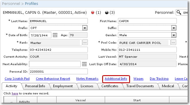 Screen Navigation: Personnel - Profiles - Additional Info link