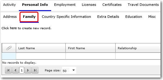 here to create new record' link to create a new family