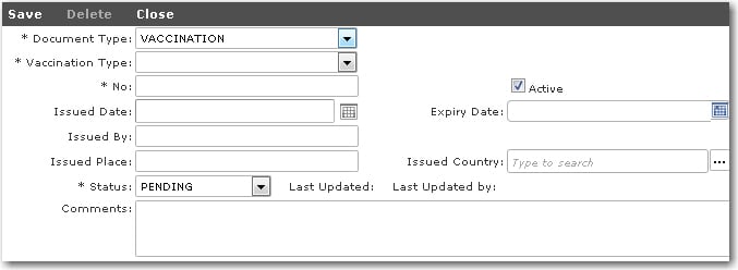 a new vaccination record for a crew member: