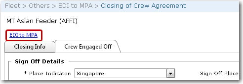 Screen Navigation: Fleet - Others - EDI to MPA - Closing of Crew Agreement link