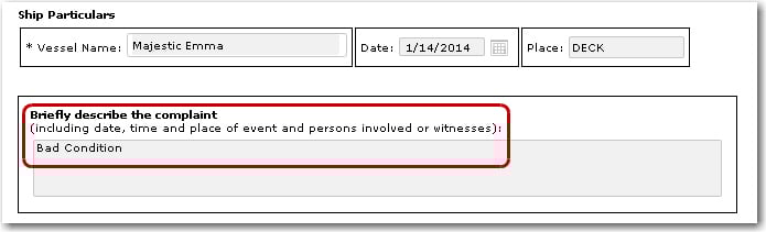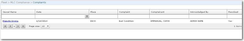 Screen Navigation: Fleet - MLC Compliance - Complaints