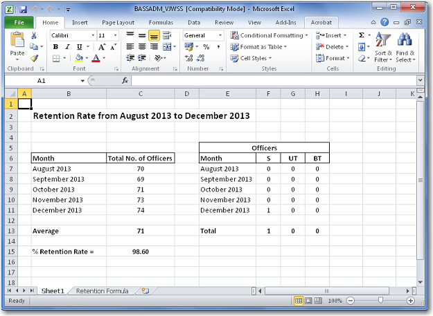 To generate an overview of your staff retention rate for a particular period: 1. From the HR Manager main menu, click Staff Strength under the Planning menu. 2. The Staff Strength screen is displayed. 3. Click the Retention Rate link. 4. The Retention pop-up window will be displayed where you can specify a time period and the Pool for the search. Then select either the Rank Group filter or the Rank filter. 5. Click OK to generate the report. You can then choose to open the report in a Microsoft Excel format or save the Microsoft Excel file to your computer.