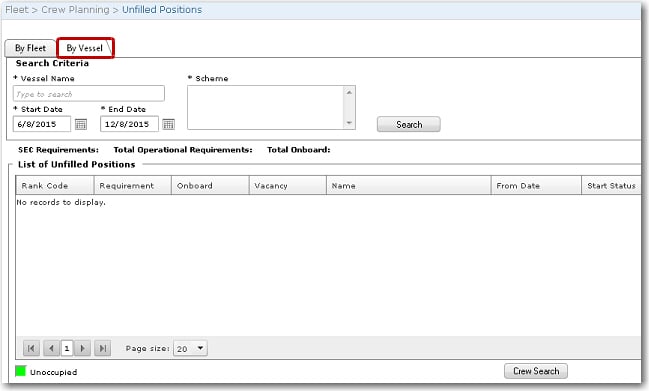 Screen Navigation: Fleet - Vessel List - Unfilled Positions link - By Vessel tab