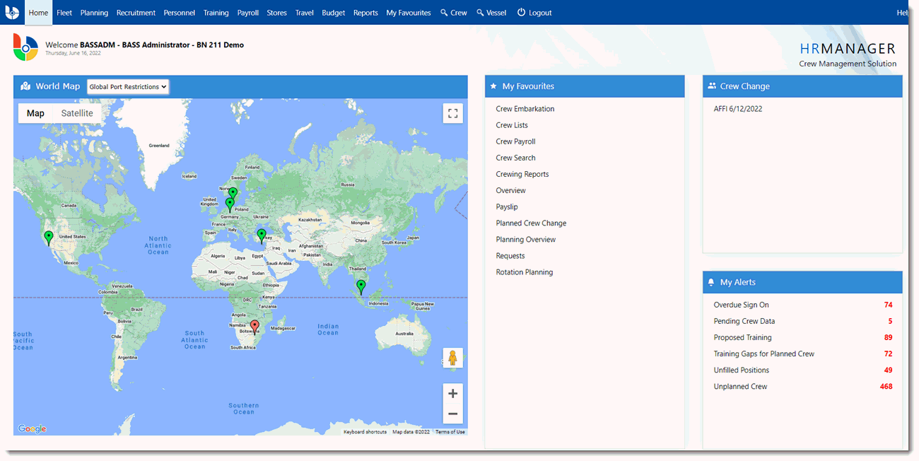 BASSnet HR Manager covers all planning and management needs in relation to Human Resource. This web-based crew software opens up product access significantly, helping ship owners and ship operators build a proactive community and thereby loyalty with seafarers, manning agents, training centres and medical centres.