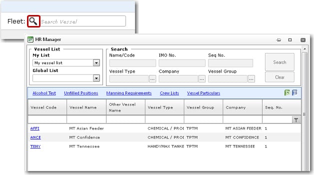To connect rank codes to account codes : 1. From the HR Manager main menu, click Payroll Setup under the Home - Administration sub menu. The Payroll Setup screen is displayed. Then, click the Secondary tab. 2. Use the Fleet search field to search and select a vessel for which you want to set up these codes. Note: To use a previously saved list of vessels, click the search icon in the Fleet search field to use the Vessel List feature on the HR Manager simple search window. Use the drop-down function to select and load a list from the Vessel List section. Then click a vessel from this list to load the record. 3. Click New to set up a new code and enter the following information: