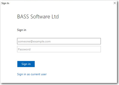To log into the HR Manager system with SSO: 1. Launch HR Manager. The login screen will be displayed. 2. Click Company Login. 3. You will be prompted to enter the Email Address assigned to you by your company (e.g. john.doe@bassnet.no) and the Password. Both attributes are case-sensitive therefore you need to ensure that you have entered them correctly. 3. Click Sign In. The BASSnet™ HR Manager main screen will be displayed. Note: BASSnet will remember the login credentials for a period of time, so remember to log out of your machine when you are done. Alternatively, if you would like to login using your company's domain name instead, click Sign in as current user. Enter the domain name assigned to you by your company (e.g. john.doe) and the Password, then click OK. Note: BASSnet HR Manager supports Single Sign-On (SSO) login with Azure Active Directory (AAD). To activate this feature, users must enable the ‘SINGLE_SIGN_ON_WEB’ configuration in BASSnet, and configure the ‘SINGLE_SIGN_ON_AUTH’ configuration to determine the SSO method (ADFS or AAD). Failure to do so will result in an error when using the SSO. If you would like to explore the option of enabling this feature, please contact BASS Support.