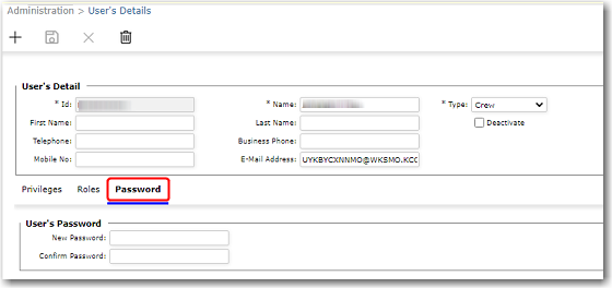 To change your password from within the User's Details screen:: 1. Under the Home module, click Users. 2. Search for your User ID using the filters available and click on the User ID. 3. Your User's Details screen will be displayed. Click the Password tab. 4. In the New Password field, type in the new password that you want to use to log into the System. 5. In the Confirm Password field, re-type your new password for confirmation. 6. Click Save. 7. Your password will be changed and you will need to use your new password the next time you log into the System. Note: A back-end system configuration is available where, if enabled, will require any new passwords to be at least 8 characters long with a mix of alpha-numeric characters. An optional uppercase and lowercase requirement can also be enabled for a stronger password. If you would like to explore the option of including this feature, please contact BASS Support. |
