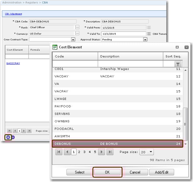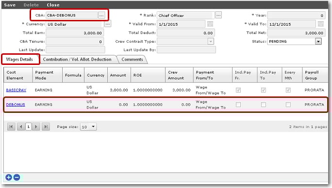 You can include a Diesel Engine Bonus in the crew member’s wages. You will need to register a new cost element for this purpose (ensuring of course that the code used matches the System Configuration code setup). In the Global Settings Register, you would need to specify the exact Vessel for which this DE Bonus is given. You can then assign this cost element to a CBA and as well as to a crew member’s wage.