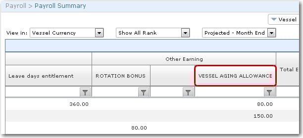 You can include a Vessel Aging Allowance in the crew member’s wages. You will need to register a new cost element for this purpose (ensuring of course that the code used matches the System Configuration code setup).